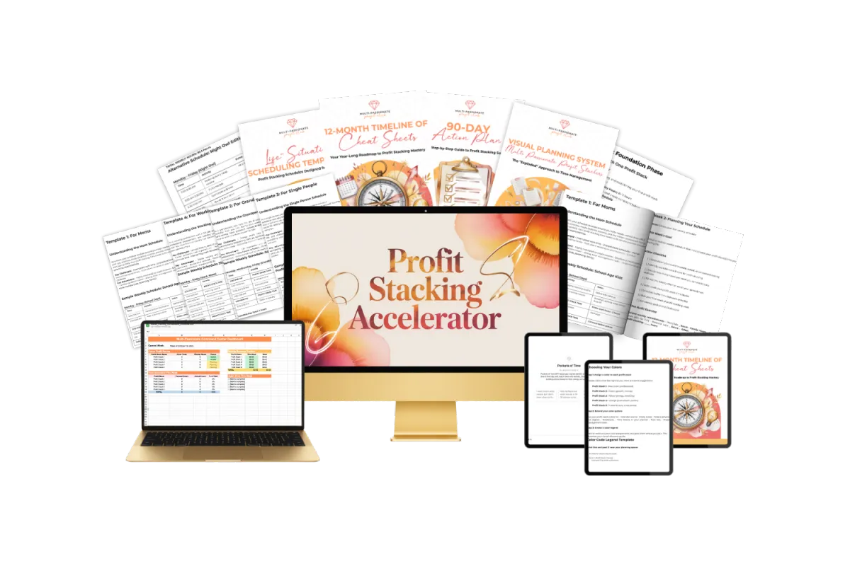 Get the scheduling systems, organizational tools, and time management strategies that make profit stacking actually sustainable. No more chaos.